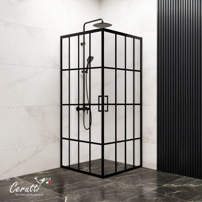 - Стильный черный профиль и эффектный рисунок на стекле создают интригу.
