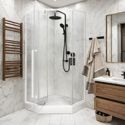 - Дверь плотно примыкает при помощи магнитного замка Soft close, благодаря чему пол всегда будет сухим.