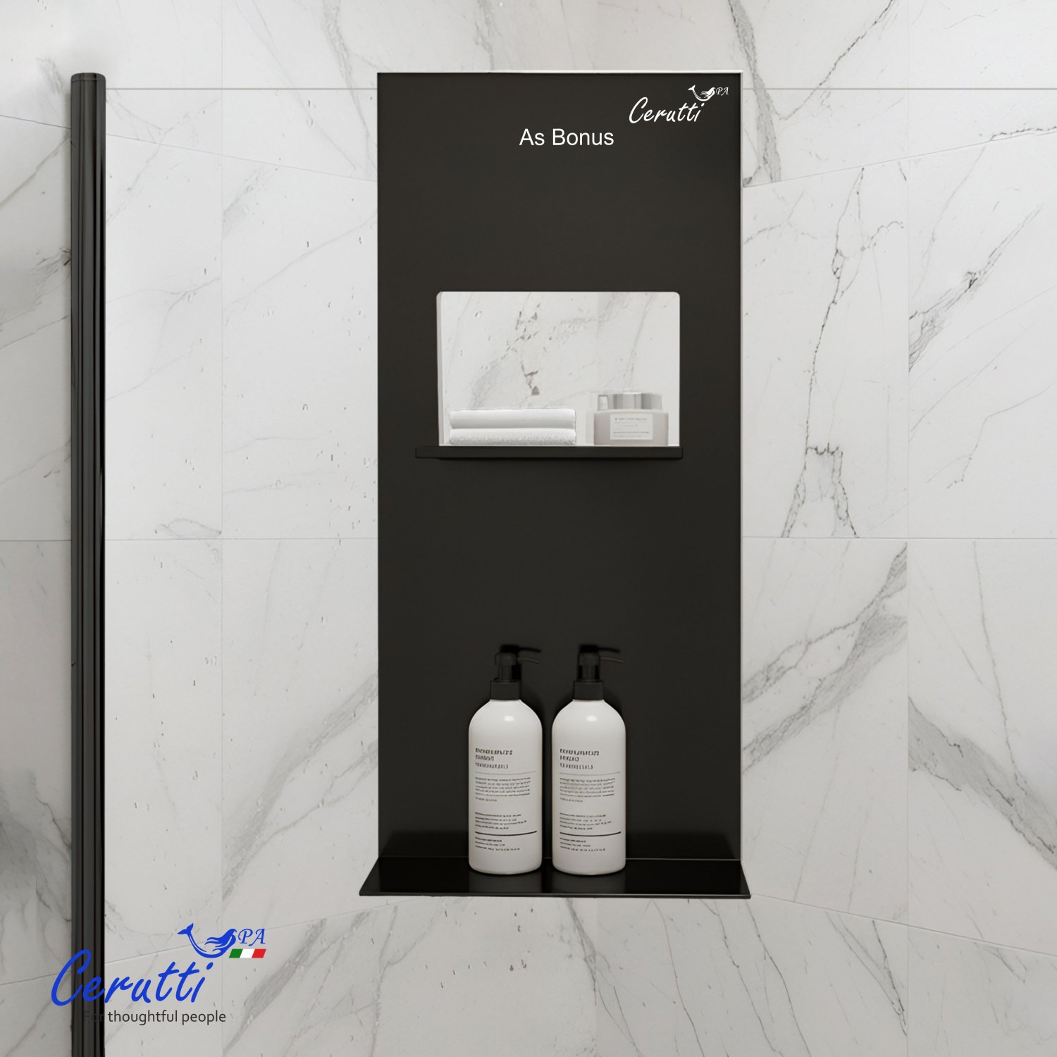 - Полка вешается на стеклянную стенку кабины или душевого ограждения.