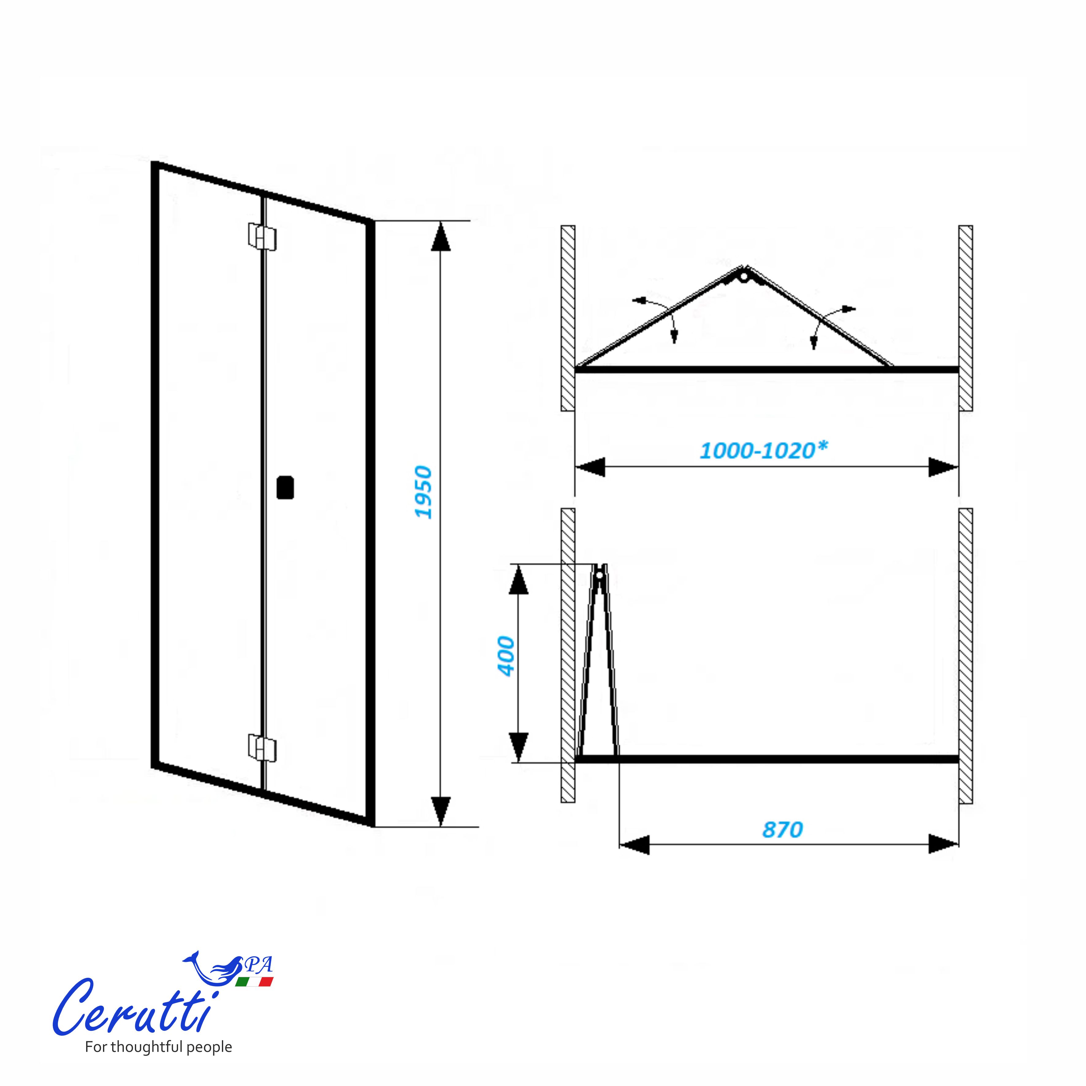 • Душевая дверь крепится к стене, подходит для установки на правую или левую сторону.