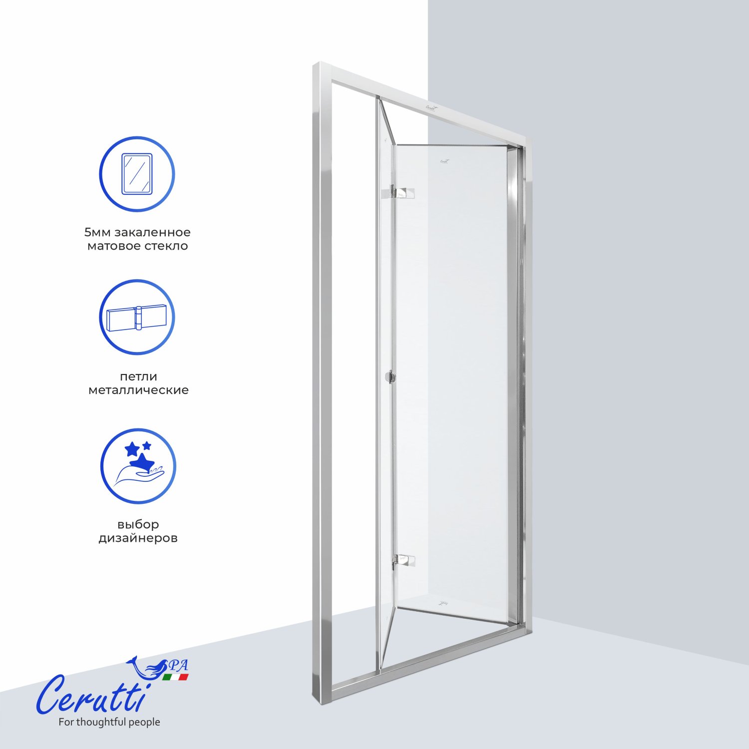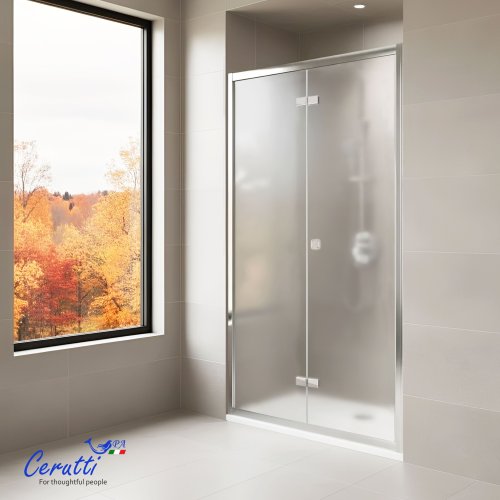 Дверь-гармошка их 2-х частей складывается во внутрь душевой зоны и образует широкий вход.