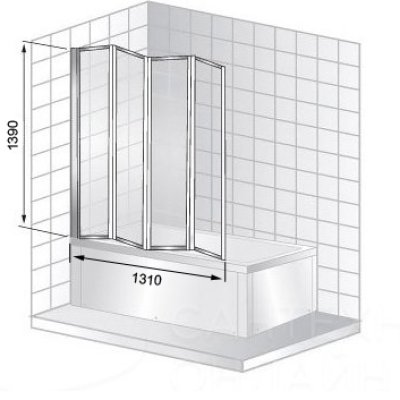 - Ограждение складывается над ванной и вода стекает в ванну, что позволяет защитить пол от воды.