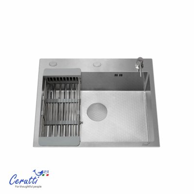 - Мойка из нержавеющей стали с рифленым PVD покрытием, способствующему ее легкой очистке (поверхность защищена от контакта с маслами и жирами, являющимися основными элементами загрязнения на кухне) и повышенной износостойкости, так как она не подвержена царапинам и на ней не скапливается вода.