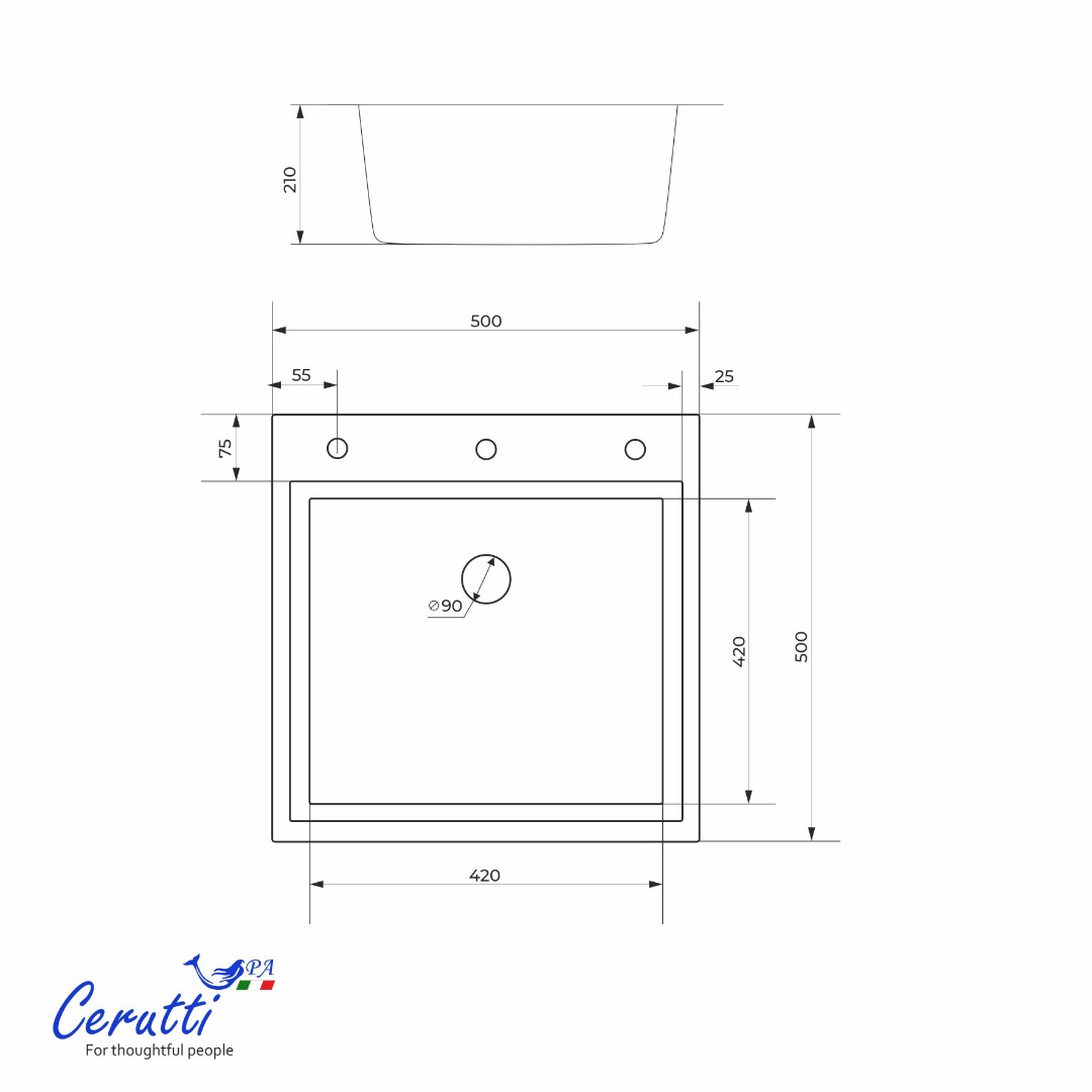 - Размер сливного отверстия — 90мм