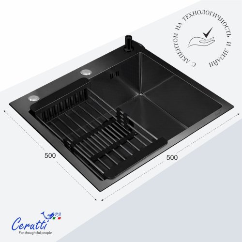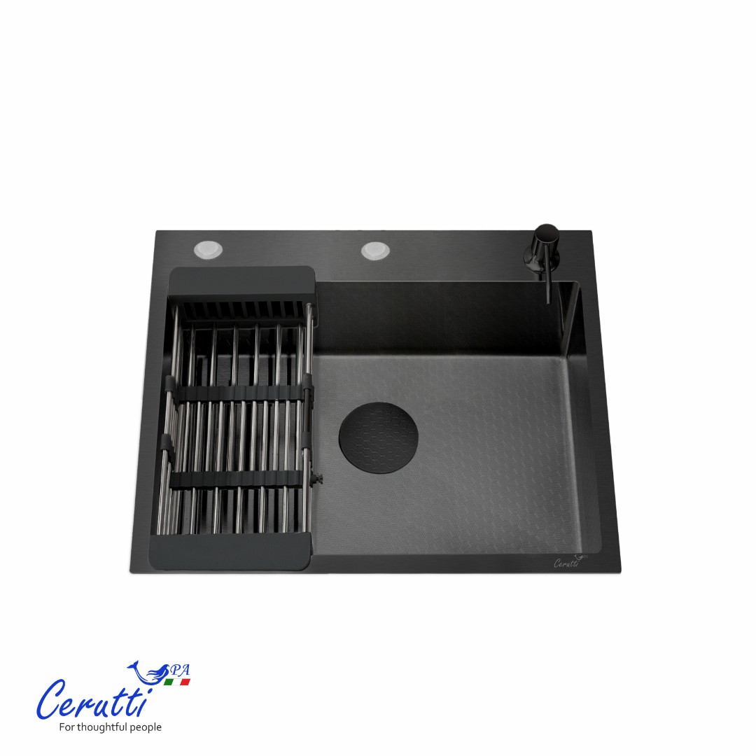 - Мойка из нержавеющей стали с рифленым PVD покрытием, способствующему ее легкой очистке (поверхность защищена от контакта с маслами и жирами, являющимися основными элементами загрязнения на кухне) и повышенной износостойкости, так как она не подвержена царапинам и на ней не скапливается вода.