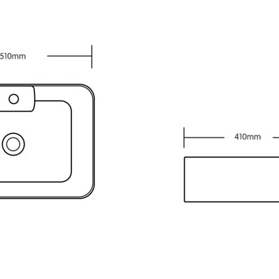 Прямоугольная раковина для ванны с отверстием под смеситель. Размеры 510х410х155 мм.