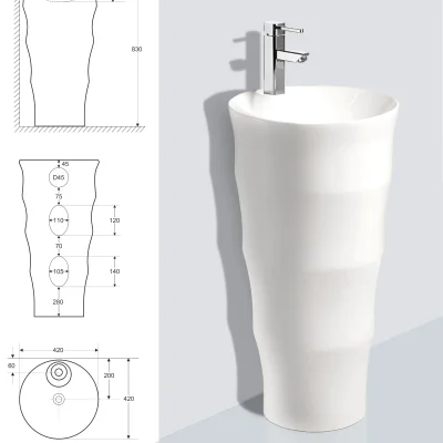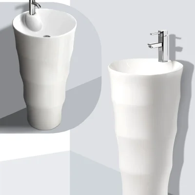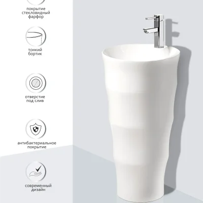 Пластичность материала позволяет изготавливать сантехнику разнообразных форм, поэтому напольные раковины представлены в разных дизайнерских решениях.