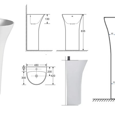 Пластичность материала позволяет изготавливать сантехнику разнообразных форм, поэтому напольные раковины представлены в разных дизайнерских решениях.