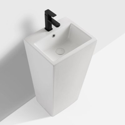 Пластичность материала позволяет изготавливать сантехнику разнообразных форм, поэтому напольные раковины представлены в разных дизайнерских решениях.