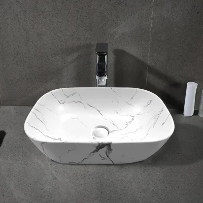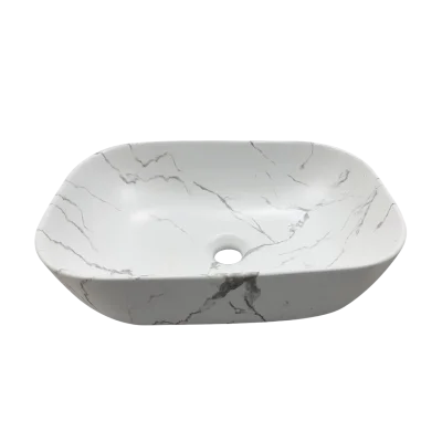 Большая прямоугольная раковина цвета белого матового мрамора.