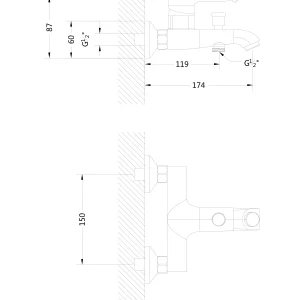 - Смеситель душевой однорычажный.