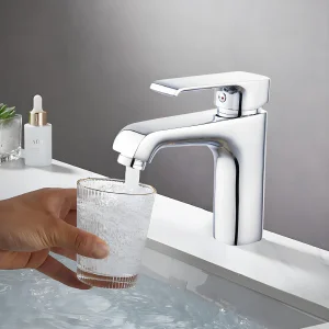 - Удобный однорычажный смеситель на раковину с низким изливом.