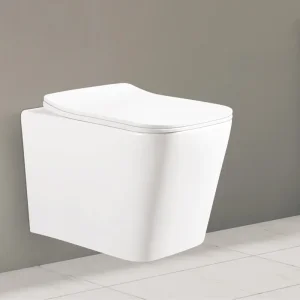 Безободковый унитаз. Сиденье из пластика с механизмом плавного опускания.