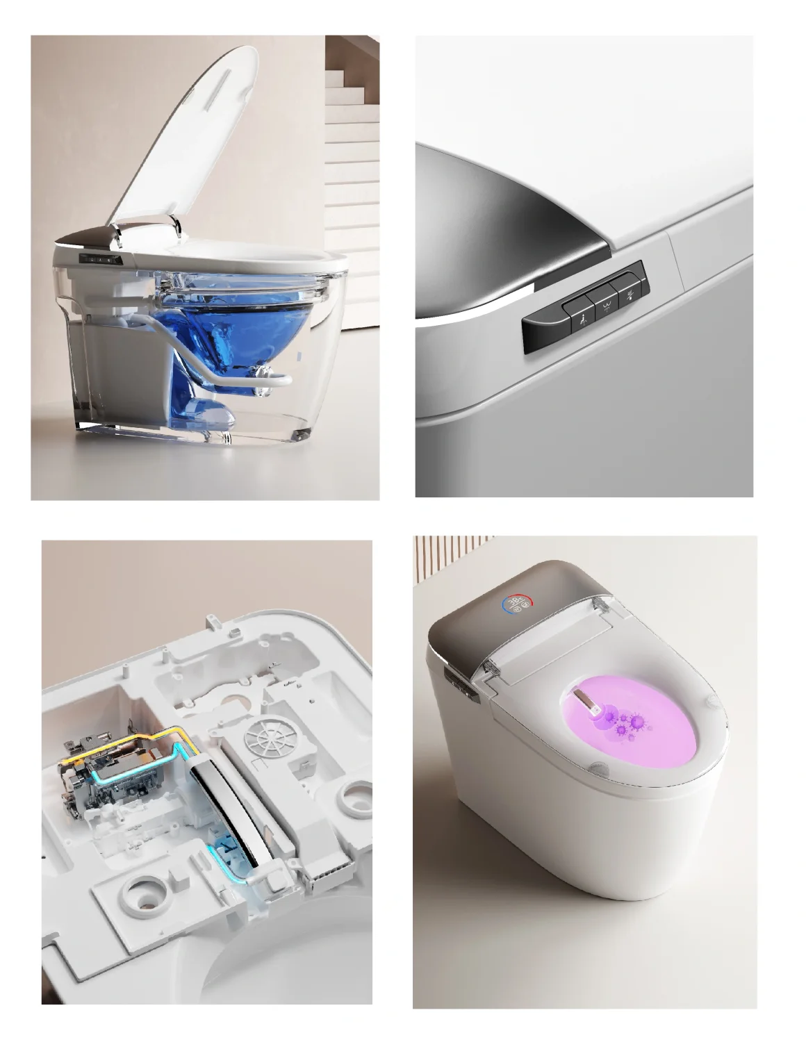 Модель оснащена интеллектуальной системой управления, которая включает широкий набор функций: автоматический смыв, подогрев сиденья, регулировку температуры воды и воздуха, а также различные режимы очищения, включая мягкий и интенсивный. Встроенная функция сушки обеспечивает дополнительный комфорт, избавляя от необходимости использования полотенец или бумаги. Управление всеми функциями осуществляется через удобную панель или дистанционный пульт, что делает эксплуатацию максимально простой и интуитивной.