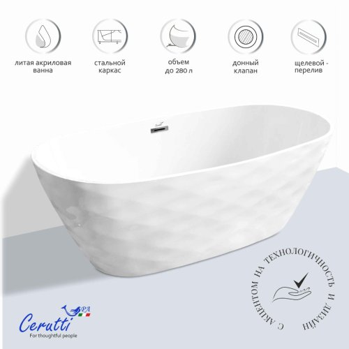 • Строгий и ясный силуэт ванны TONIA170 станет притягивающим центром дизайна вашего санузла.