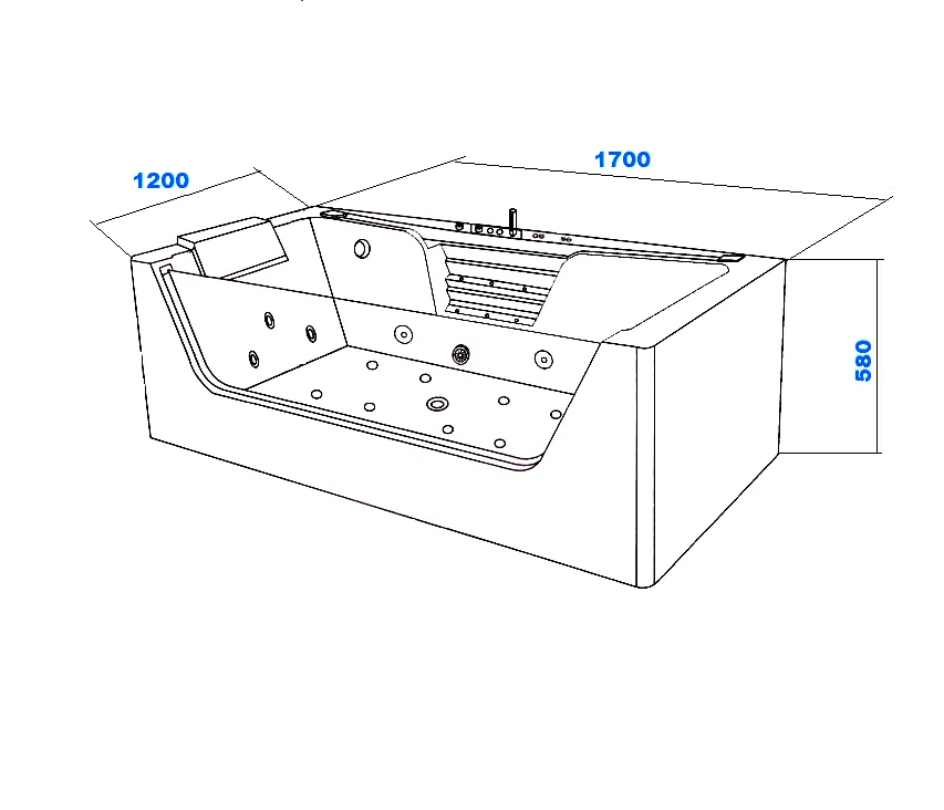 • Высокотехнологичный электронный пульт не только включает радио и массаж, подсветку, но и позволяет легко и быстро обработать ванну озоном, защищая ее от бактерий.