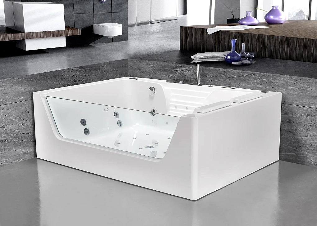 • Большая гидромассажная ванна. Выглядит солидно и современно.