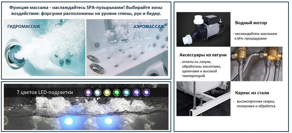 • Насладитесь расслабляющим аэромассажем и мощными струями гидромассажа у себя дома.