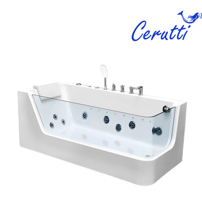 Экран из закаленного стекла придает ванне легкость и грациозность.