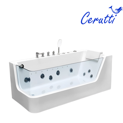 Экран из закаленного стекла придает ванне легкость и грациозность.