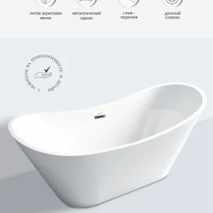 - Белоснежный акрил с антибактериальным покрытием позволит полностью расслабиться и отдохнуть принимая ванну у себя дома.