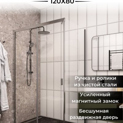 - Раздвижная дверь удобно открывается и не занимая место внутри душевого ограждения.
