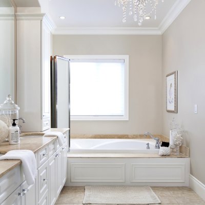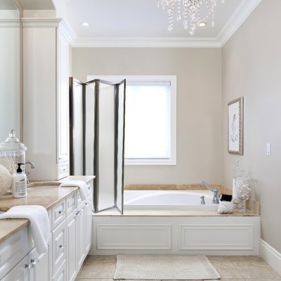 - Блестящий профиль подчеркнет дизайн ванной комнаты.
