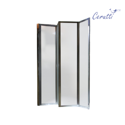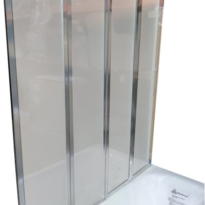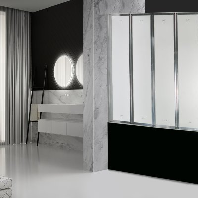 - Ограждение складывается над ванной и вода стекает в ванну, что позволяет защитить пол от воды.