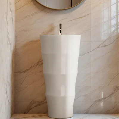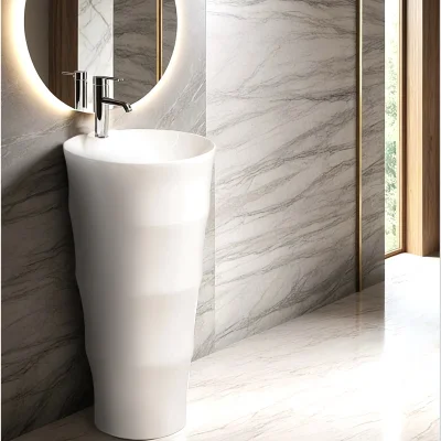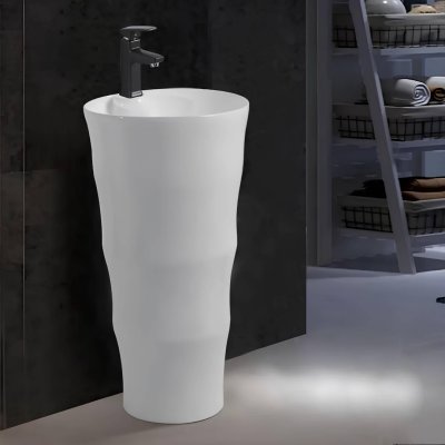 Пластичность материала позволяет изготавливать сантехнику разнообразных форм, поэтому напольные раковины представлены в разных дизайнерских решениях.