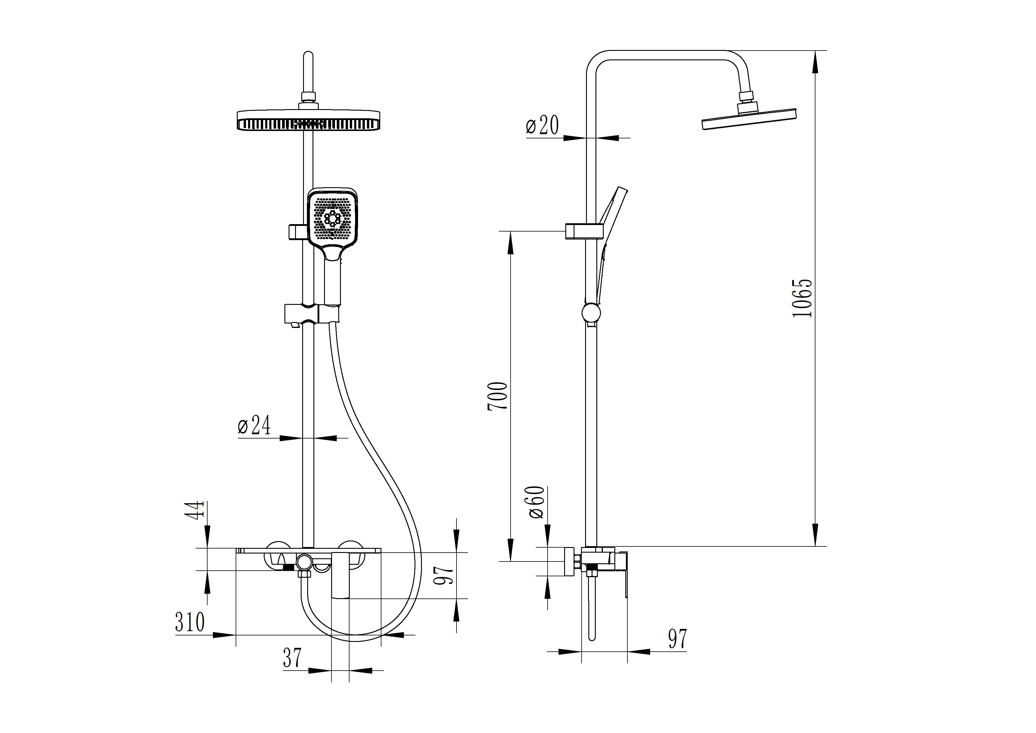 - Смеситель душевой однорычажный.