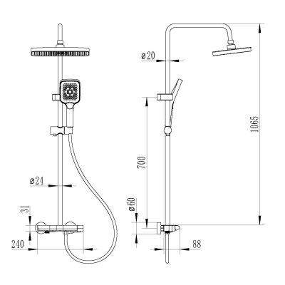 - Большой верхний душ.