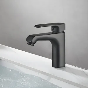 - Удобный однорычажный смеситель на раковину с низким изливом.