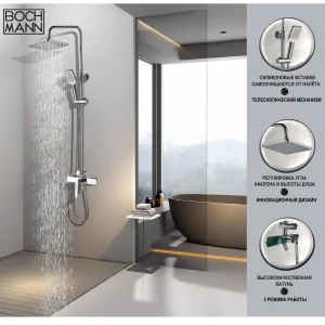- Телескопический механизм регулировки высоты верхнего душа