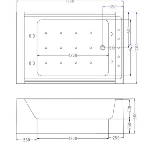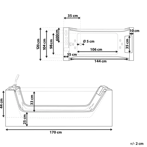 Пневмокнопка включает гидро, аэро массаж, подсветку и озонацию.